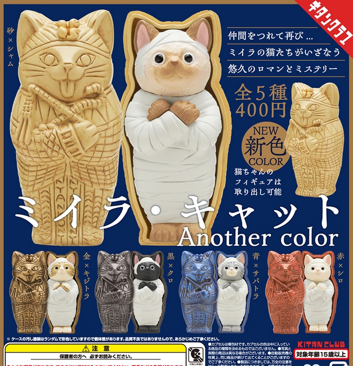 『ミイラ・キャット Another color』発売。再び目を覚ましたミイラの猫ちゃん Twitter Facebook はてブ Pocket LINE コピー 2025.05.03 『ミイラ・キャット Another color』 ◆ラインナップ <1>砂×シャム <2>金×キジトラ <3>黒×クロ <4>青×サバトラ <5>赤×シロ ◆メーカー:奇譚クラブ ◆2025年6月発売予定 ◆400円カプセル 購入はこちら(楽天)