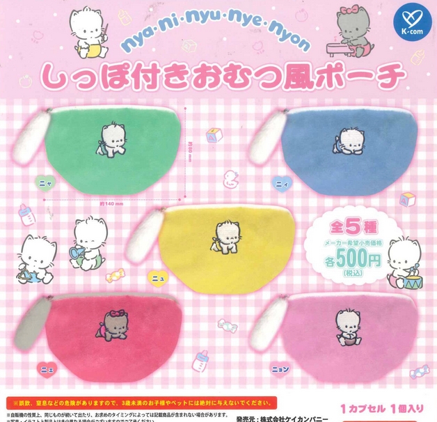 『ニャニィニュニェニョン しっぽ付きおむつ風ポーチ』発売。 Twitter Facebook はてブ Pocket LINE コピー 2025.08.19 『ニャニィニュニェニョン しっぽ付きおむつ風ポーチ』 ◆ラインナップ <1>ニャ <2>ニィ <3>ニュ <4>ニェ <5>ニョン ◆メーカー:ケイカンパニー ◆2025年9月発売予定 ◆500円カプセル 購入はこちら(楽天)