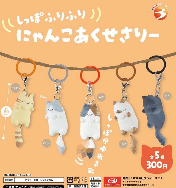 『しっぽふりふり にゃんこあくせさりー』発売。しっぽがゆれる Twitter Facebook はてブ Pocket LINE コピー 2025.08.05 『しっぽふりふり にゃんこあくせさりー』 ◆ラインナップ <1>ちゃとら <2>ぐれー <3>くろ <4>しゃむ <5>みけ ◆メーカー:ブライトリンク ◆2025年9月発売予定 ◆300円カプセル 購入はこちら(楽天)