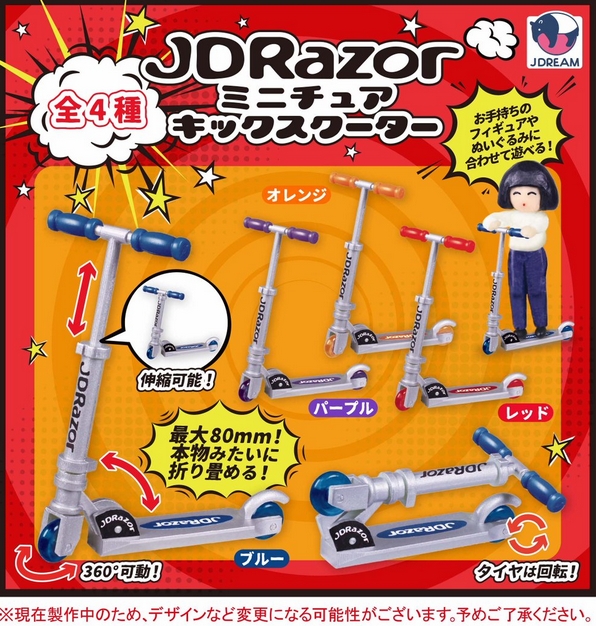 『JDRazor ミニチュアキックスクーター』11月発売予定。フィギュアやぬいぐるみに合わせて遊べる!