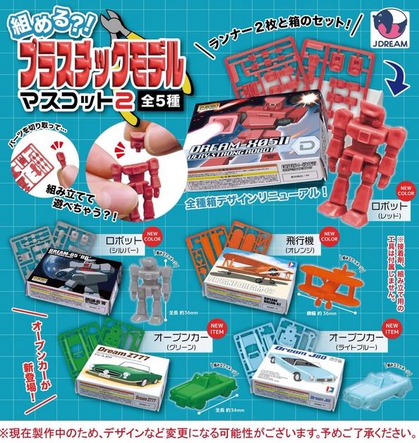 『組める?!プラスチックモデルマスコット2』11月発売予定。ランナー2枚と箱のセット!