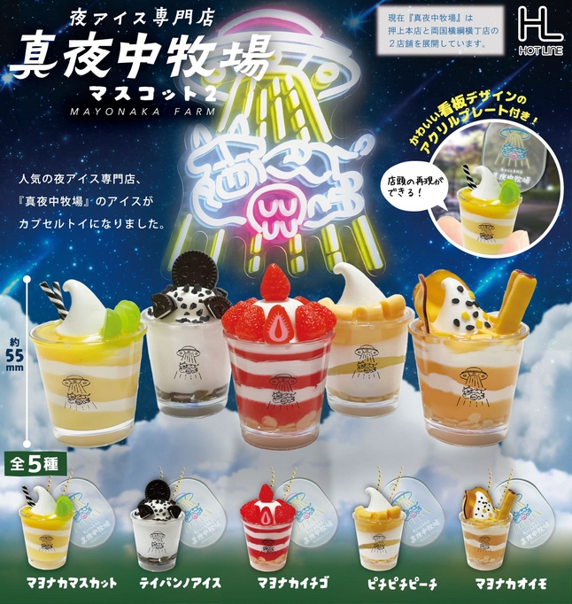 『真夜中牧場マスコット2』11月発売予定。人気の夜アイス専門店、「真夜中牧場」のアイスがカプセルトイになりました。 Twitter Facebook はてブ Pocket LINE コピー 2025.10.10 『真夜中牧場マスコット2』 ◆ラインナップ <1>マヨナカマスカット <2>テイバンノアイス <3>マヨナカイチゴ <4>ピチピチピーチ <5>マヨナカオイモ ◆メーカー:ホットライン ◆2025年11月発売予定 ◆400円カプセル 購入はこちら(楽天)