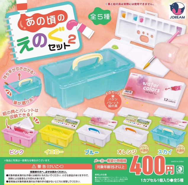 『あの頃のえのぐセット2』発売。持ち手が引き出せる!筆が置ける! Twitter Facebook はてブ Pocket LINE コピー 2025.09.30 『あの頃のえのぐセット2』 ◆ラインナップ <1>スカイ <2>ピンク <3>イエロー <4>ブルー <5>オレンジ ◆メーカー:J.DREAM ◆2025年11月発売予定 ◆400円カプセル 購入はこちら(楽天)