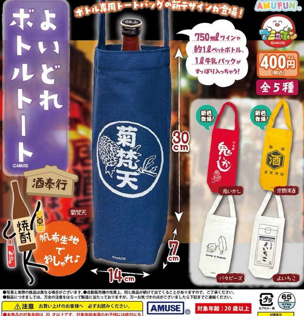 『よいどれボトルトート 酒奉行』発売。ボトル専用トートバッグの新デザインが登場! Twitter Facebook はてブ Pocket LINE コピー 2025.09.27 『よいどれボトルトート 酒奉行』 ◆ラインナップ <1>菊梵天 <2>鬼いかし <3>求楽得酒 <4>バタピーズ <5>よいちこ ◆メーカー:アミューズ ◆2025年11月発売予定 ◆400円カプセル 購入はこちら(楽天)