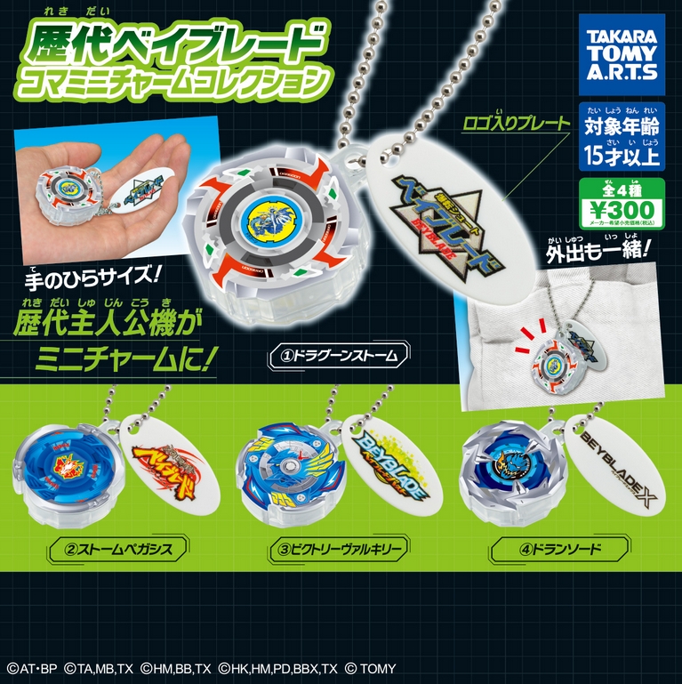 『歴代ベイブレード コマミニチャームコレクション』発売!歴代主人公機がミニチャームに! Twitter Facebook はてブ Pocket LINE コピー 2025.10.15 『歴代ベイブレード コマミニチャームコレクション』 ◆ラインナップ <1>ドラグーンストーム <2>ストームペガシス <3>ビクトリーヴァルキリー <4>ドランソード ◆メーカー:タカラトミーアーツ ◆2025年10月発売 ◆300円カプセル 購入はこちら(楽天)