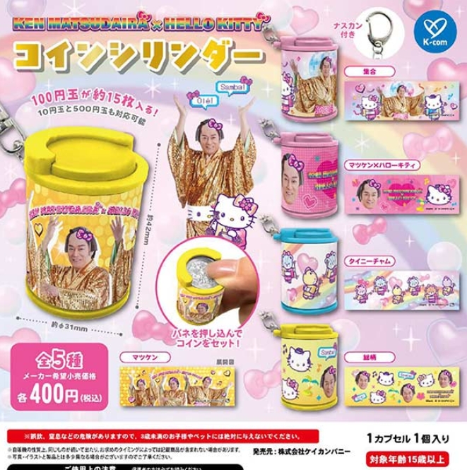 『マツケンサンバ×ハローキティ コインシリンダー』発売。100円玉が約15枚入る! Twitter Facebook はてブ Pocket LINE コピー 2025.11.07 『マツケンサンバ×ハローキティ コインシリンダー』 ◆ラインナップ <1>マツケン <2>集合 <3>マツケン×ハローキティ <4>タイニーチャム <5>総柄 ◆メーカー:ケイカンパニー ◆2025年12月発売予定 ◆400円カプセル 購入はこちら(楽天)