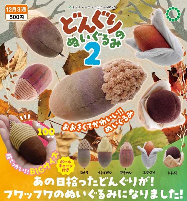 『ネイチャーテクニカラー MONO どんぐりのぬいぐるみ2』12月発売予定。あの日拾ったどんぐりが!フワッフワのぬいぐるみになりました! Twitter Facebook はてブ Pocket LINE コピー 2025.11.17 『ネイチャーテクニカラー MONO どんぐりのぬいぐるみ2』 ◆ラインナップ <1>コナラ <2>イチイガシ <3>アラカシ <4>スダジイ <5>トチノミ ◆メーカー:いきもん ◆2025年12月発売予定 ◆500円カプセル 購入はこちら(楽天)