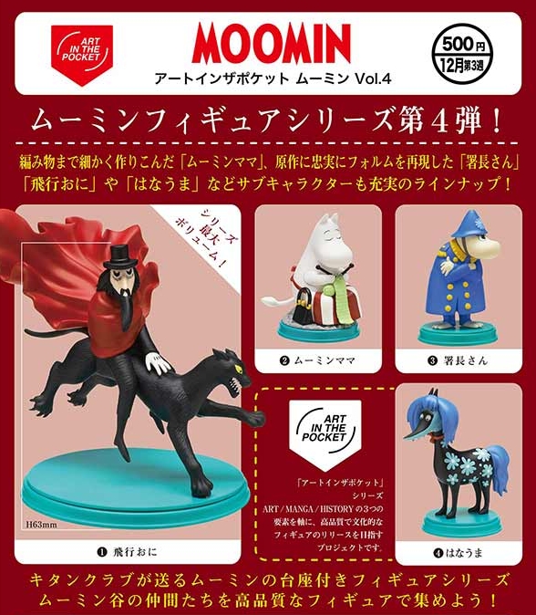 『アートインザポケット ムーミン Vol.4』12月発売予定。 Twitter Facebook はてブ Pocket LINE コピー 2025.11.01 『アートインザポケット ムーミン Vol.4』 ◆ラインナップ <1>飛行おに <2>ムーミンママ <3>署長さん <4>はなうま ◆メーカー:奇譚クラブ ◆2025年12月発売予定 ◆500円カプセル 購入はこちら(楽天)