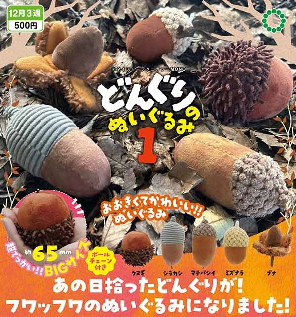 『ネイチャーテクニカラー MONO どんぐりのぬいぐるみ1』12月発売予定。あの日拾ったどんぐりが!フワッフワのぬいぐるみになりました!