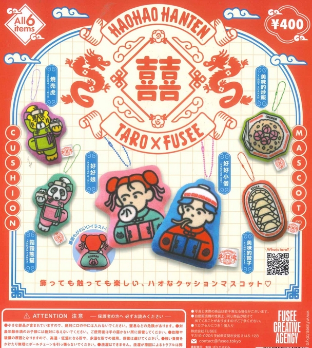 『taro×Fusee クッションマスコット』発売。 Twitter Facebook はてブ Pocket LINE コピー 2025.10.21 『taro×Fusee クッションマスコット』 ◆ラインナップ <1>好好娘 <2>好好小僧 <3>餡饅熊猫 <4>焼売虎 <5>美味的餃子 <6>美味的炒飯 ◆メーカー:フュージー ◆2025年10月発売 ◆400円カプセル 購入はこちら(楽天)