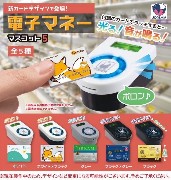 『電子マネーマスコット5』12月発売予定。付属のカードでタッチすると…光る!音が鳴る! Twitter Facebook はてブ Pocket LINE コピー 2025.11.08 『電子マネーマスコット5』 ◆ラインナップ <1>ホワイト <2>ホワイト×ブラック <3>グレー <4>ブラック×グレー <5>ブラック ◆メーカー:J.DREAM ◆2025年12月発売予定 ◆400円カプセル 購入はこちら(楽天)