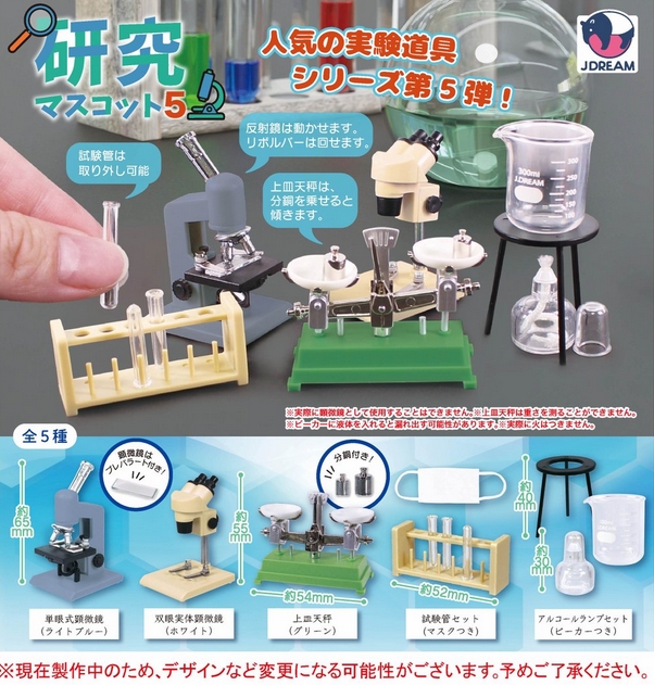 『研究マスコット5』12月発売予定。人気の実験道具シリーズ第5弾! Twitter Facebook はてブ Pocket LINE コピー 2025.11.05 『研究マスコット5』 ◆ラインナップ <1>単眼式顕微鏡 <2>双眼実体顕微鏡 <3>上皿天秤 <4>試験管セット <5>アルコールランプ ◆メーカー:J.DREAM ◆2025年12月発売予定 ◆400円カプセル 購入はこちら(楽天)