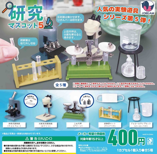 『研究マスコット5』発売。人気の実験道具シリーズ第5弾! Twitter Facebook はてブ Pocket LINE コピー 2025.11.05 『研究マスコット5』 ◆ラインナップ <1>単眼式顕微鏡 <2>双眼実体顕微鏡 <3>上皿天秤 <4>試験管セット <5>アルコールランプ ◆メーカー:J.DREAM ◆2025年12月発売予定 ◆400円カプセル 購入はこちら(楽天)