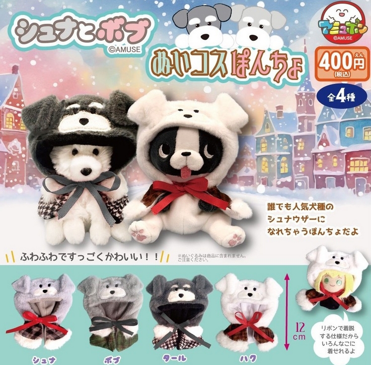 『シュナとボブ ぬいコス ぽんちょ』12月発売予定。誰でも人気犬種のシュナウザーになれちゃうぽんちょだよ