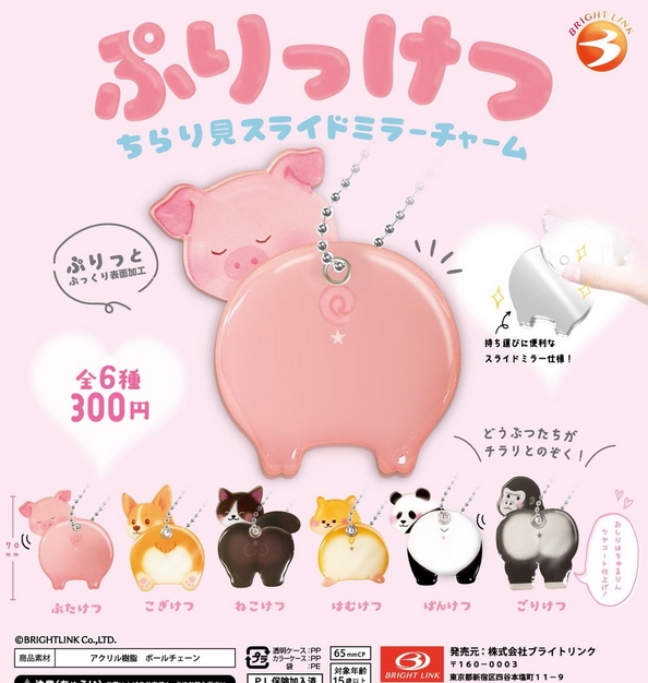 『ぷりっけつ ちらり見スライドミラーチャーム』発売。どうぶつたちがチラリとのぞく! Twitter Facebook はてブ Pocket LINE コピー 2025.10.29 『ぷりっけつ ちらり見スライドミラーチャーム』 ◆ラインナップ <1>こぎけつ <2>はむけつ <3>ぶたけつ <4>ねこけつ <5>ぱんけつ ◆メーカー:ブライトリンク ◆2025年10月発売 ◆300円カプセル 購入はこちら(楽天)