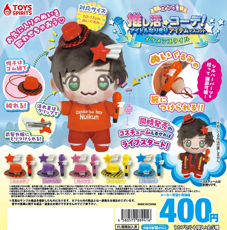『推し活コーデ!アイドルなりきりアイテムマスコット イケメンスタイル』発売。 Twitter Facebook はてブ Pocket LINE コピー 2025.10.30 『推し活コーデ!アイドルなりきりアイテムマスコット イケメンスタイル』 ◆ラインナップ <1>レッド <2>パープル <3>ピンク <4>イエロー <5>ブルー ◆メーカー:トイズスピリッツ ◆2025年10月発売 ◆400円カプセル 購入はこちら(楽天)
