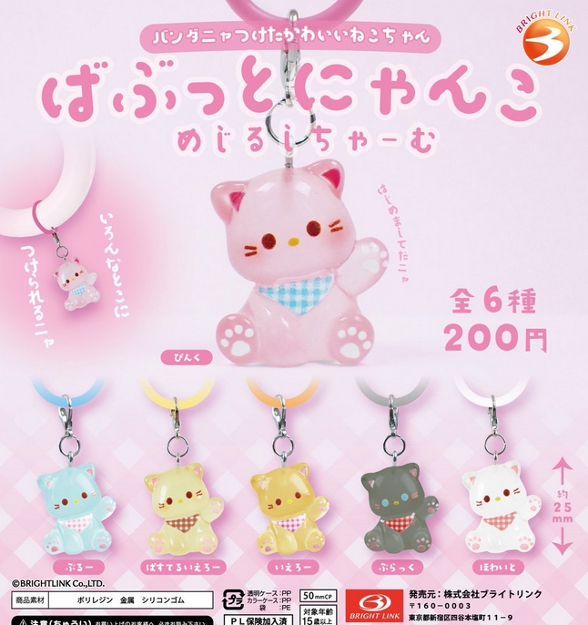 『ばぶっとにゃんこ めじるしちゃーむ』発売。いろんなところにつけられるニャ Twitter Facebook はてブ Pocket LINE コピー 2025.11.07 『ばぶっとにゃんこ めじるしちゃーむ』 ◆ラインナップ <1>ぴんく <2>ぶるー <3>ぱすてるいえろー <4>いえろー <5>ぶらっく <6>ほわいと ◆メーカー:ブライトリンク ◆2025年11月発売 ◆200円カプセル 購入はこちら(楽天)