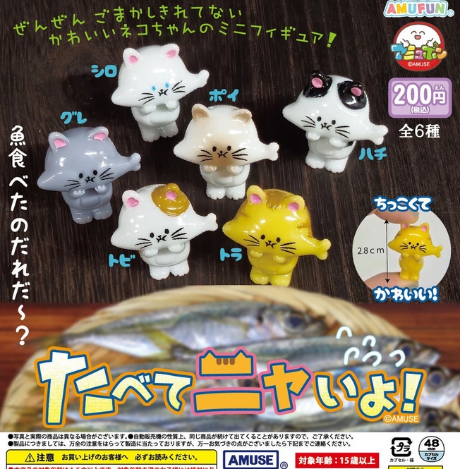 『たべてニャいよ!』発売。ぜんぜんごまかしきれてない かわいいネコちゃんのミニフィギュア! Twitter Facebook はてブ Pocket LINE コピー 2025.11.15 『たべてニャいよ!』 ◆ラインナップ <1>トビ <2>グレ <3>シロ <4>ハチ <5>トラ <6>ポイ ◆メーカー:ブライトリンク ◆2025年11月発売 ◆200円カプセル 購入はこちら(楽天)