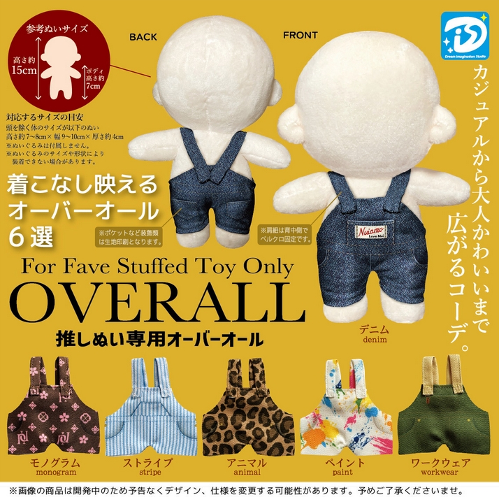 『推しぬい専用 オーバーオール』発売。着こなし映えるオーバーオール6選。カジュアルから大人カワイイまで 広がるコーデ。 Twitter Facebook はてブ Pocket LINE コピー 2025.12.16 『推しぬい専用 オーバーオール』 ◆ラインナップ <1>デニム <2>モノグラム <3>ストライプ <4>アニマル <5>ペイント <6>ワークウェア ◆メーカー:ディーアイエス ◆2026年1月発売予定 ◆400円カプセル 購入はこちら(楽天)