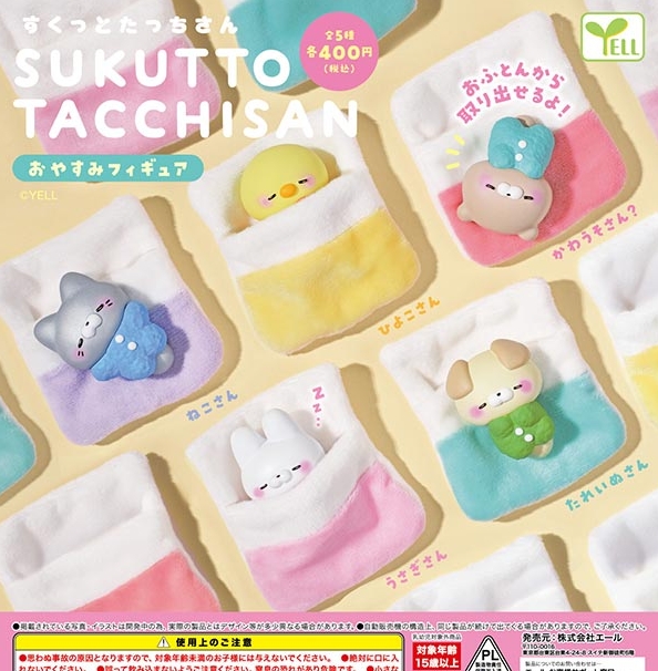 『すくっとたっちさん おやすみフィギュア』1月発売予定。おふとんから取り出せるよ! Twitter Facebook はてブ Pocket LINE コピー 2025.12.12 『すくっとたっちさん おやすみフィギュア』 ◆ラインナップ <1>ひよこさん <2>かわうそさん? <3>たれいぬさん <4>ねこさん <5>うさぎさん ◆メーカー:エール ◆2026年1月発売予定 ◆400円カプセル 購入はこちら(楽天)