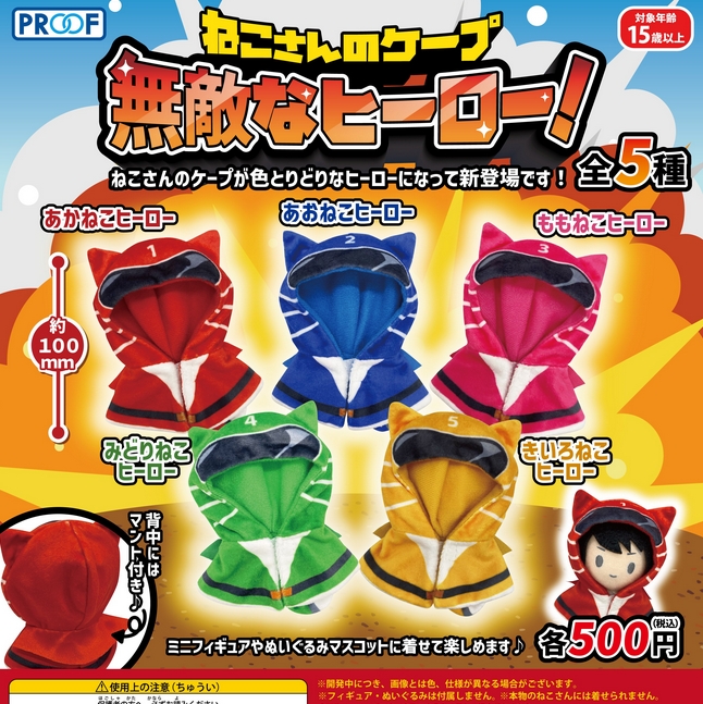『ねこさんのケープ 無敵なヒーロー!』1月発売予定。ねこさんのケープが色とりどりなヒーローになって新登場です! Twitter Facebook はてブ Pocket LINE コピー 2025.12.15 『ねこさんのケープ 無敵なヒーロー!』 ◆ラインナップ <1>あかねこヒーロー <2>あおねこヒーロー <3>ももねこヒーロー <4>みどりねこヒーロー <5>きいろねこヒーロー ◆メーカー:PROOF ◆2026年1月発売予定 ◆500円カプセル 購入はこちら(楽天)