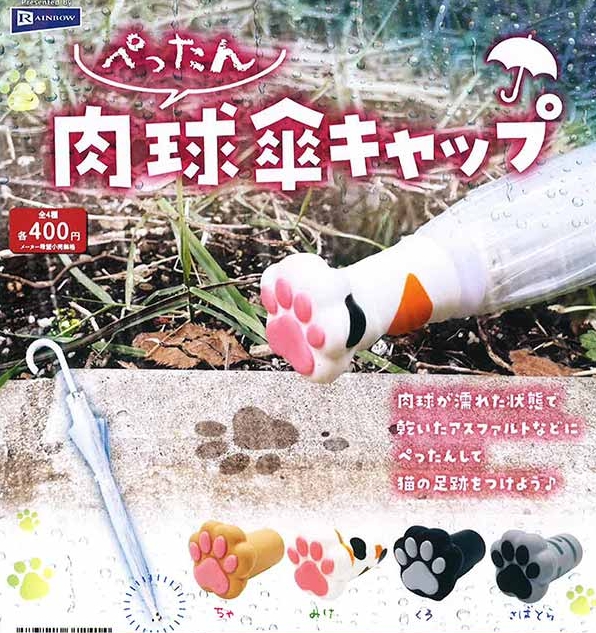 『ぺったん肉球傘キャップ』1月発売予定。肉球が濡れた状態で乾いたアスファルトなどにぺったんして猫の足跡をつけよう♪ Twitter Facebook はてブ Pocket LINE コピー 2025.12.02 『ぺったん肉球傘キャップ』 ◆ラインナップ <1>ちゃ <2>みけ <3>くろ <4>さばとら ◆メーカー:レインボー ◆2026年1月発売予定 ◆400円カプセル 購入はこちら(楽天)