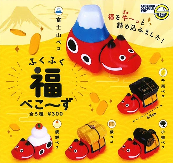 『ふくふく福べこ〜ず』1月発売予定。福を牛~っと詰め込みました! Twitter Facebook はてブ Pocket LINE コピー 2025.12.19 『ふくふく福べこ〜ず』 ◆ラインナップ <1>富士山ベコ <2>千両ベコ <3>鏡餅ベコ <4>俵ベコ <5>小槌ベコ ◆メーカー:三洋堂 ◆2026年1月発売予定 ◆300円カプセル 購入はこちら(楽天)