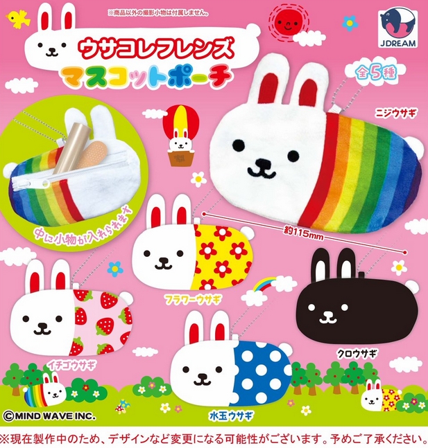 『ウサコレフレンズ マスコットポーチ』1月発売予定。中に小物が入れられます Twitter Facebook はてブ Pocket LINE コピー 2025.11.25 『ウサコレフレンズ マスコットポーチ』 ◆ラインナップ <1>ニジウサギ <2>フラワーウサギ <3>イチゴウサギ <4>水玉ウサギ <5>クロウサギ ◆メーカー:J.DREAM ◆2025年1月発売予定 ◆500円カプセル 購入はこちら(楽天)