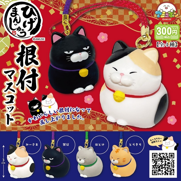 『ひげまんじゅう根付マスコット』1月発売予定。かわいらしい根付になって蒸し上がりました。 Twitter Facebook はてブ Pocket LINE コピー 2025.11.25 『ひげまんじゅう根付マスコット』 ◆ラインナップ <1>みーさま <2>黒豆 <3>ほとけ <4>とらきち ◆メーカー:アミューズ ◆2026年1月発売予定 ◆300円カプセル 購入はこちら(楽天)