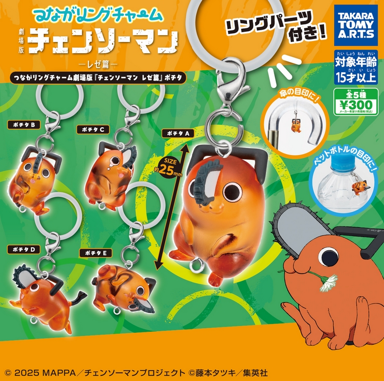 『つながリングチャーム 劇場版チェンソーマン レゼ編 ポチタ』発売! Twitter Facebook はてブ Pocket LINE コピー 2025.11.25 『つながリングチャーム 劇場版チェンソーマン レゼ編 ポチタ』 ◆ラインナップ <1>ポチタA <2>ポチタB <3>ポチタC <4>ポチタD <5>ポチタE ◆メーカー:タカラトミーアーツ ◆2025年11月発売 ◆00円カプセル 購入はこちら(楽天)