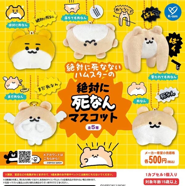 『絶対に死なないハムスター 絶対に死なんマスコット』2月発売予定。 Twitter Facebook はてブ Pocket LINE コピー 2026.01.09 『絶対に死なないハムスター 絶対に死なんマスコット』 ◆ラインナップ <1>落ちても死なん <2>撃たれても死なん <3>死なん <4>まだ死なん <5>絶対に死なん ◆メーカー:ケイカンパニー ◆2026年2月発売予定 ◆500円カプセル 購入はこちら(楽天)