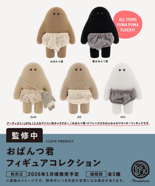 『おぱんつ君 フィギュアコレクション』2月発売予定。『おぱんつ君』とフレンズたちのふわふわフロッキーフィギュアです。 Twitter Facebook はてブ Pocket LINE コピー 2026.01.07 『おぱんつ君 フィギュアコレクション』 ◆ラインナップ <1>おぱんつ君 <2>黒おぱんつ君 <3>SUN <4>JEE <5>KIO ◆メーカー:ケンエレファント ◆2026年2月発売予定 ◆500円カプセル 購入はこちら(楽天)
