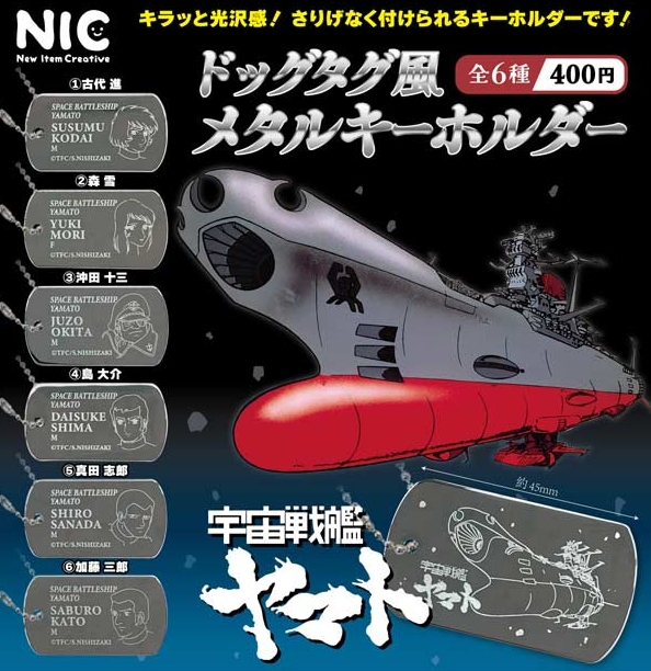 『宇宙戦艦ヤマト ドッグタグ風メタルキーホルダー』2月発売予定。キラッと光沢感!さりげなく付けられるキーホルダーです! Twitter Facebook はてブ Pocket LINE コピー 2026.01.10 『宇宙戦艦ヤマト ドッグタグ風メタルキーホルダー』 ◆ラインナップ <1>古代 進 <2>森 雪 <3>沖田 十三 <4>島 大介 <5>真田 志郎 <6>加藤 三郎 ◆メーカー:NIC ◆2026年2月発売予定 ◆400円カプセル 購入はこちら(楽天)