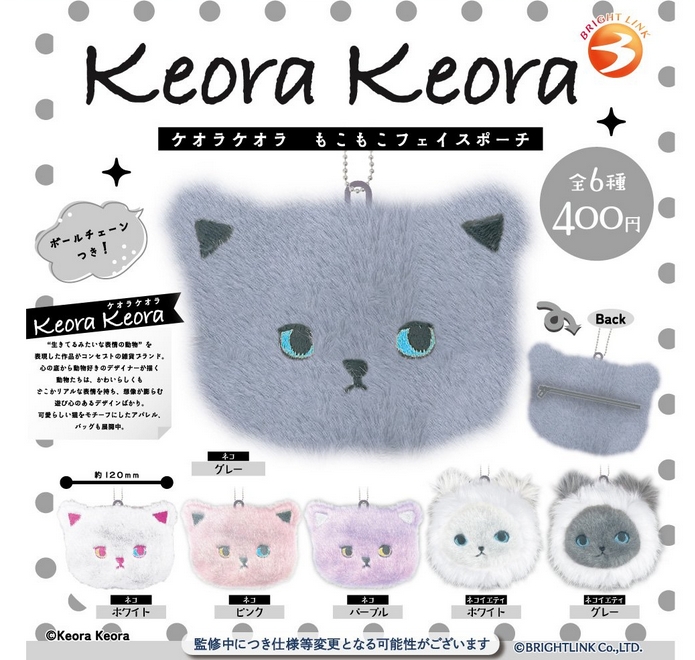 『Keora Keora もこもこフェイスポーチ』2月発売予定。