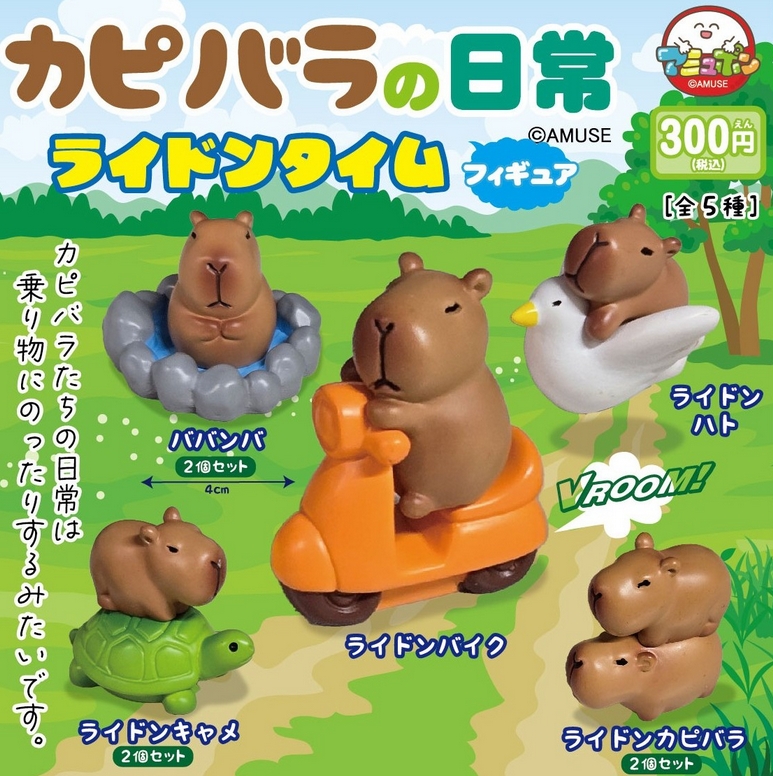 『カピバラの日常フィギュア ライドンタイム』2月発売予定。カピバラたちの日常は乗り物にのったりするみたいです。