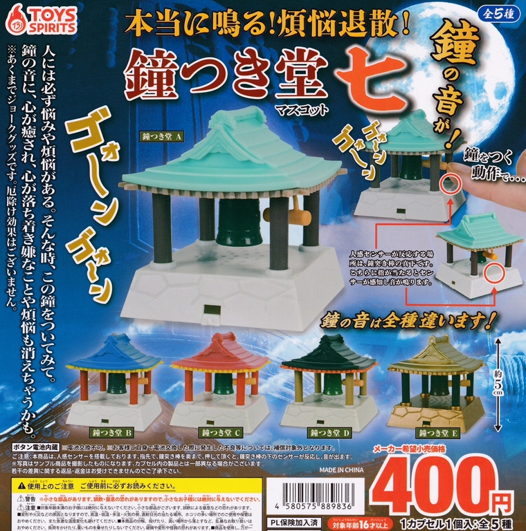 『本当に鳴る!煩悩退散!鐘つき堂マスコット 七』発売。人には必ず悩みや煩悩がある。そんな時、この鐘をついてみて。 Twitter Facebook はてブ Pocket LINE コピー 2025.12.26 『本当に鳴る!煩悩退散!鐘つき堂マスコット 七』 ◆ラインナップ <1>鐘つき堂A <2>鐘つき堂B <3>鐘つき堂C <4>鐘つき堂D <5>鐘つき堂E ◆メーカー:トイズスピリッツ ◆2025年12月発売 ◆400円カプセル 購入はこちら(楽天)