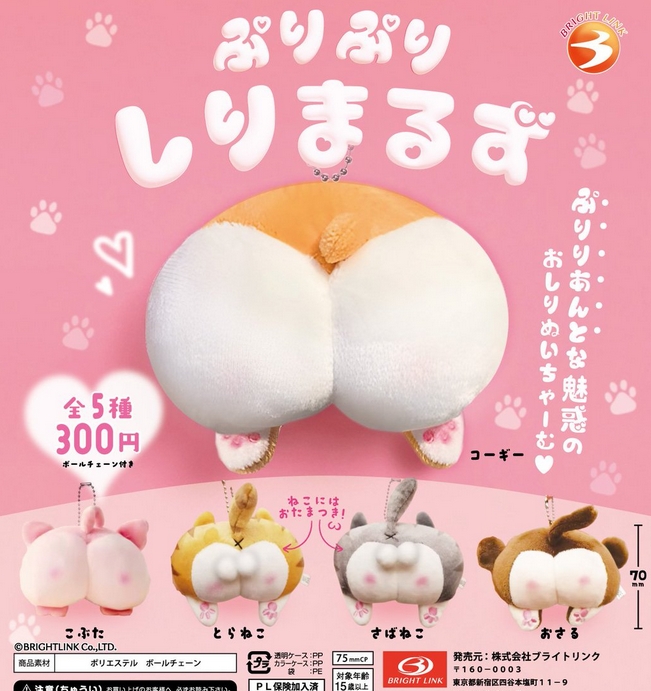 『ぷりぷりしりまるず おしりぬいチャーム』発売。ぷりりあんとな魅惑のおしりぬいちゃーむ♡ Twitter Facebook はてブ Pocket LINE コピー 2025.12.30 『ぷりぷりしりまるず おしりぬいチャーム』 ◆ラインナップ <1>コーギー <2>こぶた <3>とらねこ <4>さばねこ <5>おさる ◆メーカー:ブライトリンク ◆2025年12月発売 ◆300円カプセル 購入はこちら(楽天)