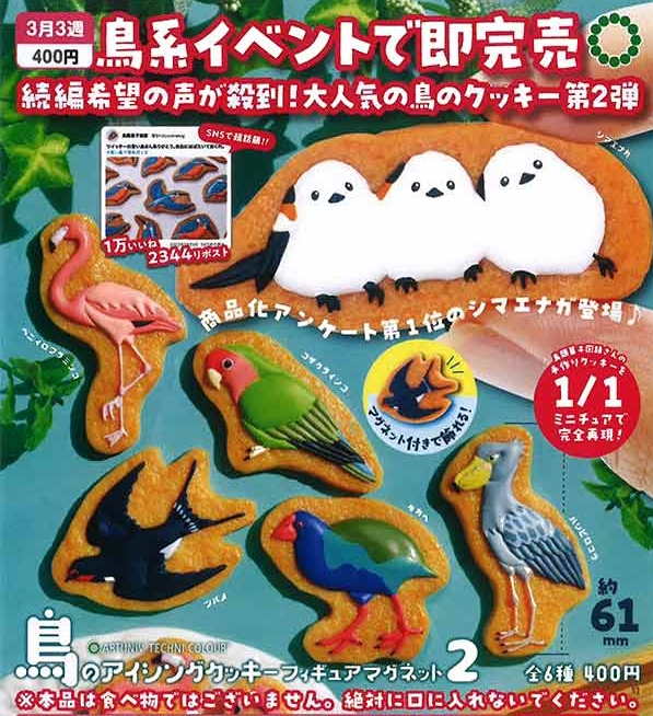 『アートユニブテクニカラー 鳥のアイシングクッキー フィギュアマグネット2』3月発売予定。大人気の鳥のクッキー第2弾