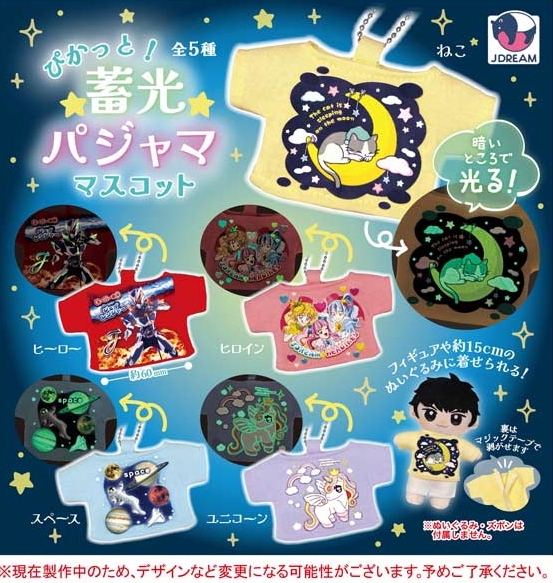 『ぴかっと!蓄光パジャママスコット』3月発売予定。フィギュアや約15cmのぬいぐるみに着せられる! Twitter Facebook はてブ Pocket LINE コピー 2026.02.09 『ぴかっと!蓄光パジャママスコット』 ◆ラインナップ <1>ねこ <2>ヒーロー <3>ヒロイン <4>スペース <5>ユニコーン ◆メーカー:J.DREAM ◆2026年3月発売予定 ◆400円カプセル 購入はこちら(楽天)