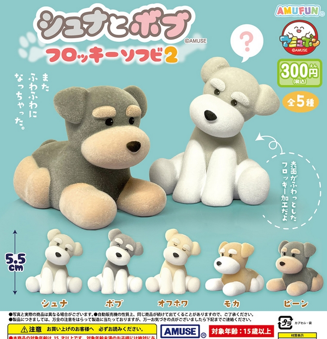 『シュナとボブ フロッキーソフビ2』発売。表面がふわっとしたフロッキー加工だよ