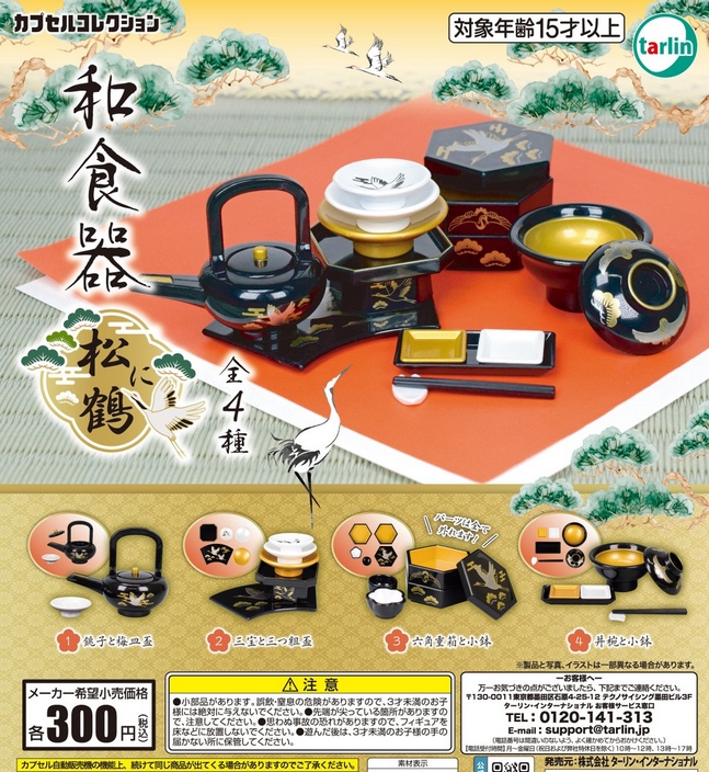 『和食器 松に鶴』発売。 Twitter Facebook はてブ Pocket LINE コピー 2026.01.13 『和食器 松に鶴』 ◆ラインナップ <1>銚子と梅皿盃 <2>三宝と三つ組盃 <3>六角重箱と小鉢 <4>丼椀と小鉢 ◆メーカー:ターリン・インターナショナル ◆2026年1月発売 ◆300円カプセル 購入はこちら(楽天)