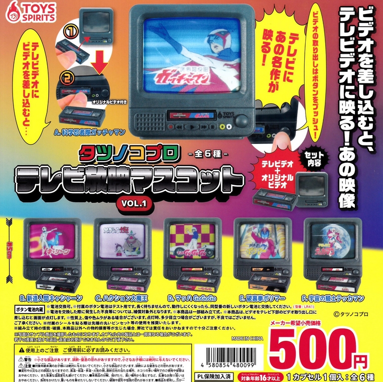 『タツノコプロ テレビ放映マスコット VOL.1』発売。ビデオを差し込むと、テレビデオに映る!あの映像