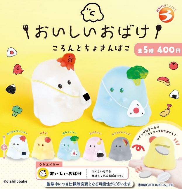 『おいしいおばけ ころんとちょきんばこ』3月発売予定。コインがたまったらフタをとって取り出せる!