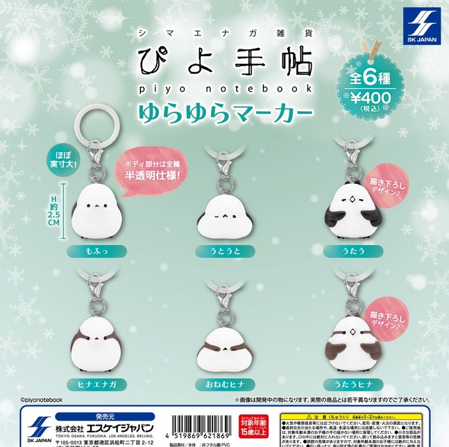 『ぴよ手帖 ゆらゆらマーカー』発売! Twitter Facebook はてブ Pocket LINE コピー 2026.01.22 『ぴよ手帖 ゆらゆらマーカー』 ◆ラインナップ <1>もふっ <2>うとうと <3>うたう <4>ヒナエナガ <5>おねむヒナ <6>うたうヒナ ◆メーカー:SK JAPAN ◆2026年1月発売 ◆400円カプセル 購入はこちら(楽天)