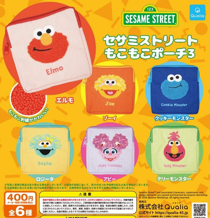 『セサミストリート もこもこポーチ3』発売! Twitter Facebook はてブ Pocket LINE コピー 2026.01.23 『セサミストリート もこもこポーチ3』 ◆ラインナップ <1>エルモ <2>ゾーイ <3>クッキーモンスター <4>ロジータ <5>アビー <6>テリーモンスター ◆メーカー:Qualia ◆2026年1月発売 ◆400円カプセル 購入はこちら(楽天)