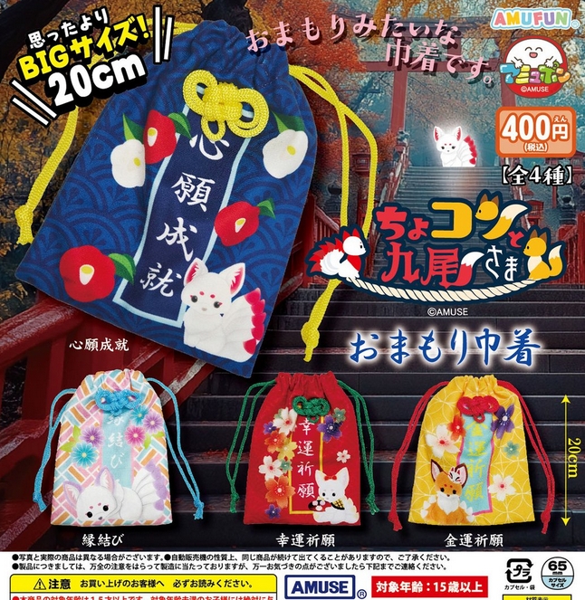 『ちょコンと九尾さま おまもり巾着』発売。おまもりみたいな巾着です。 Twitter Facebook はてブ Pocket LINE コピー 2026.01.25 『ちょコンと九尾さま おまもり巾着』 ◆ラインナップ <1>心願成就 <2>縁結び <3>幸運祈願 <4>金運祈願 ◆メーカー:アミューズ ◆2026年1月発売 ◆400円カプセル 購入はこちら(楽天)