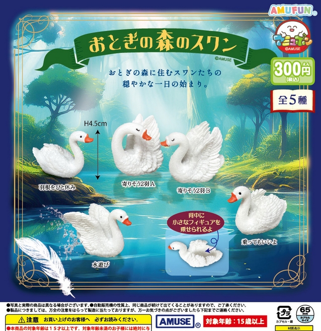 『おとぎの森のスワン』発売。背中に小さなフィギュアを乗せられるよ Twitter Facebook はてブ Pocket LINE コピー 2026.02.05 『おとぎの森のスワン』 ◆ラインナップ <1>寄りそう2羽A <2>寄りそう2羽B <3>羽根をひと休み <4>水遊び <5>乗ってもいいよ ◆メーカー:アミューズ ◆2026年2月発売 ◆300円カプセル 購入はこちら(楽天)