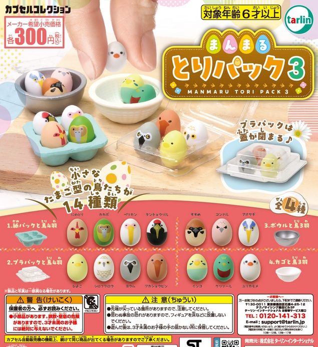 <2>プラパックと鳥4羽(ひよこ シロフクロウ ヨウム アカショウビン)