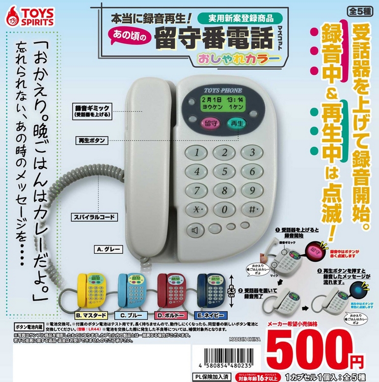 『本当に録音再生!あの頃の留守番電話マスコット おしゃれカラー』発売。受話器を上げて録音開始。