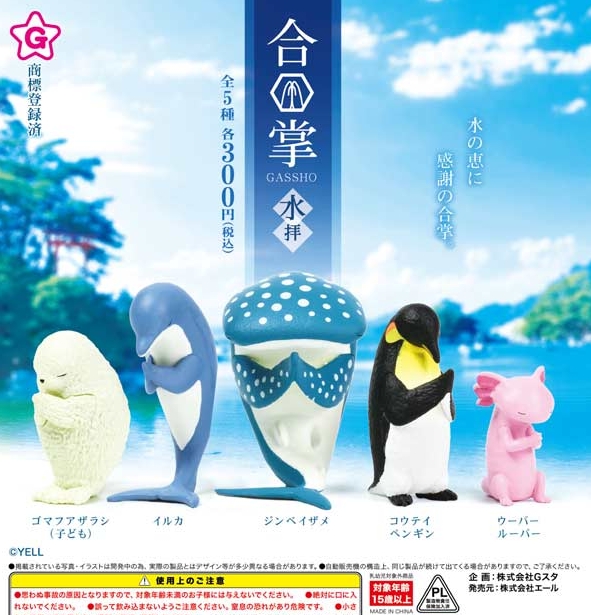 スポンサーリンク スポンサーリンク 『合掌 水拝』4月発売予定。水の恵に感謝の合掌。 Twitter Facebook はてブ Pocket LINE コピー 2026.03.10 『合掌 水拝』 ◆ラインナップ <1>ゴマフアザラシ(子ども) <2>イルカ <3>ジンベイザメ <4>コウテイペンギン <5>ウーパールーパー ◆メーカー:エール ◆2026年4月発売予定 ◆300円カプセル 購入はこちら(楽天)